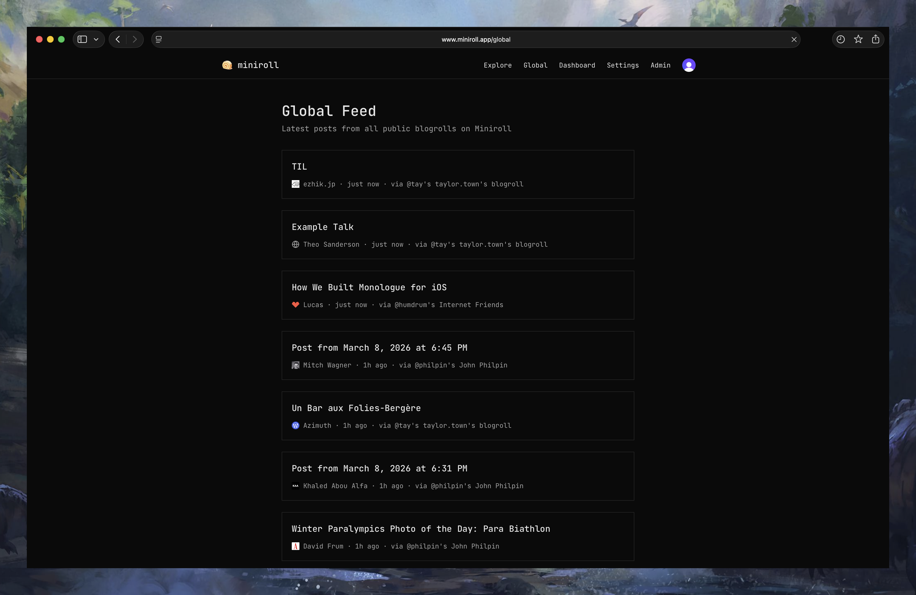 One reason I built Miniroll was because I wanted a place to discover new blogs to read. However, even if I added an explore page where you can view a random set of blogrolls and blogs that have been added, it's hard to judge a blog by a name.
